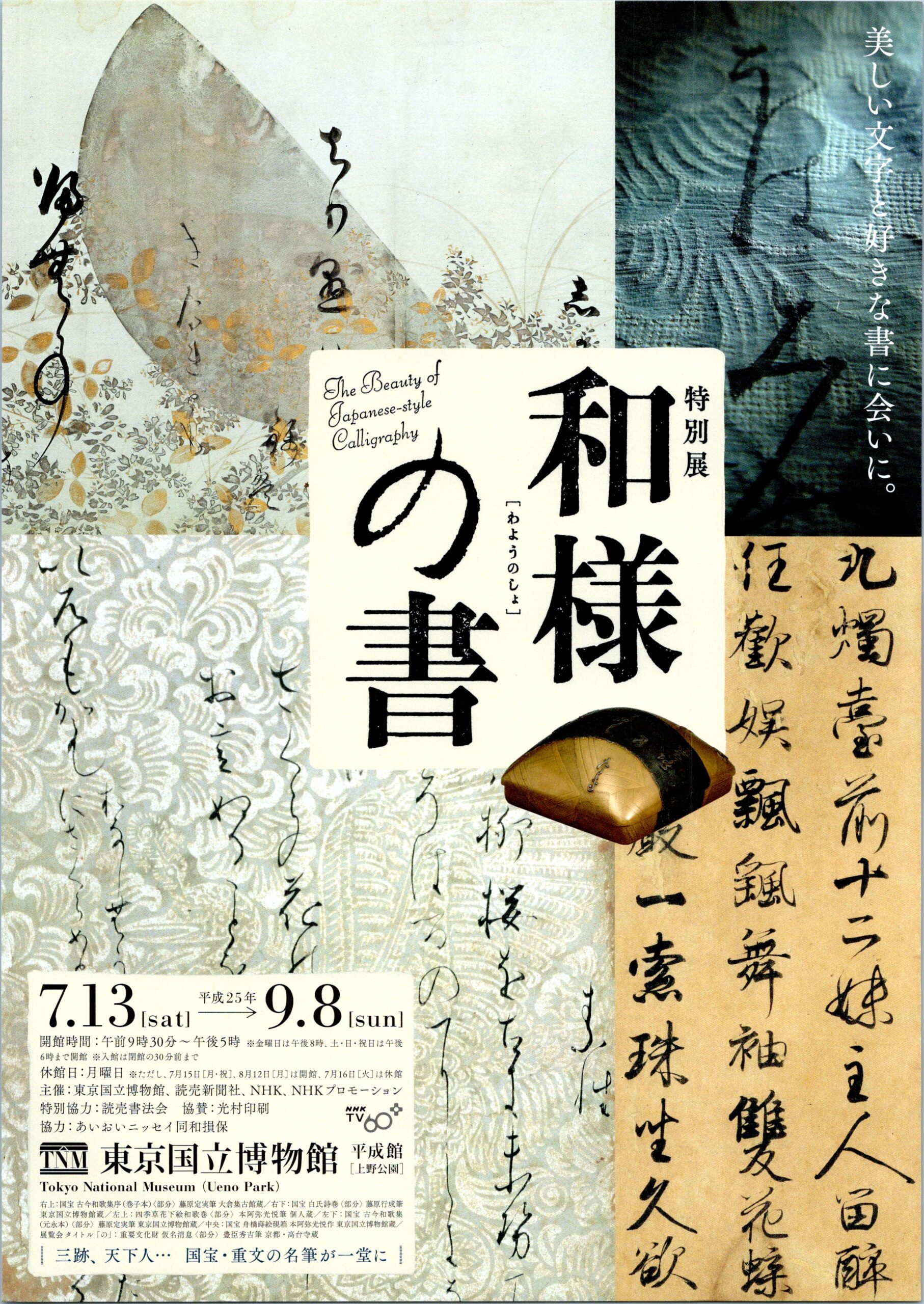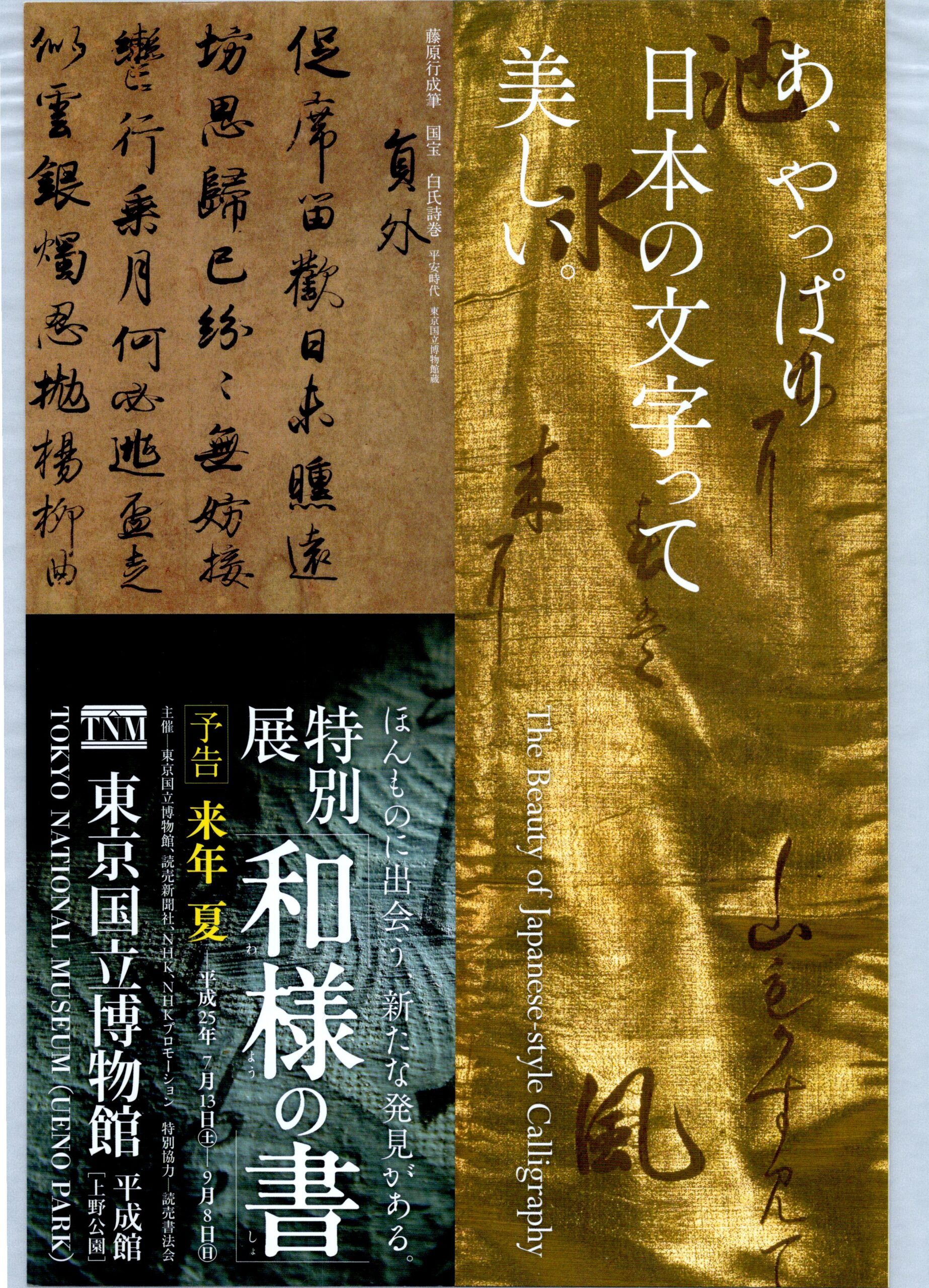 「和様の書」とは、中国からもたらされた書法を日本の文化の中で独自に発展させた、日本風の書のこと。三跡と呼ばれる小野道風・藤原佐理・藤原行成をはじめ日本を代表する能書の作品や四大手鑑など至高の名筆が一堂に集まる展覧会です。