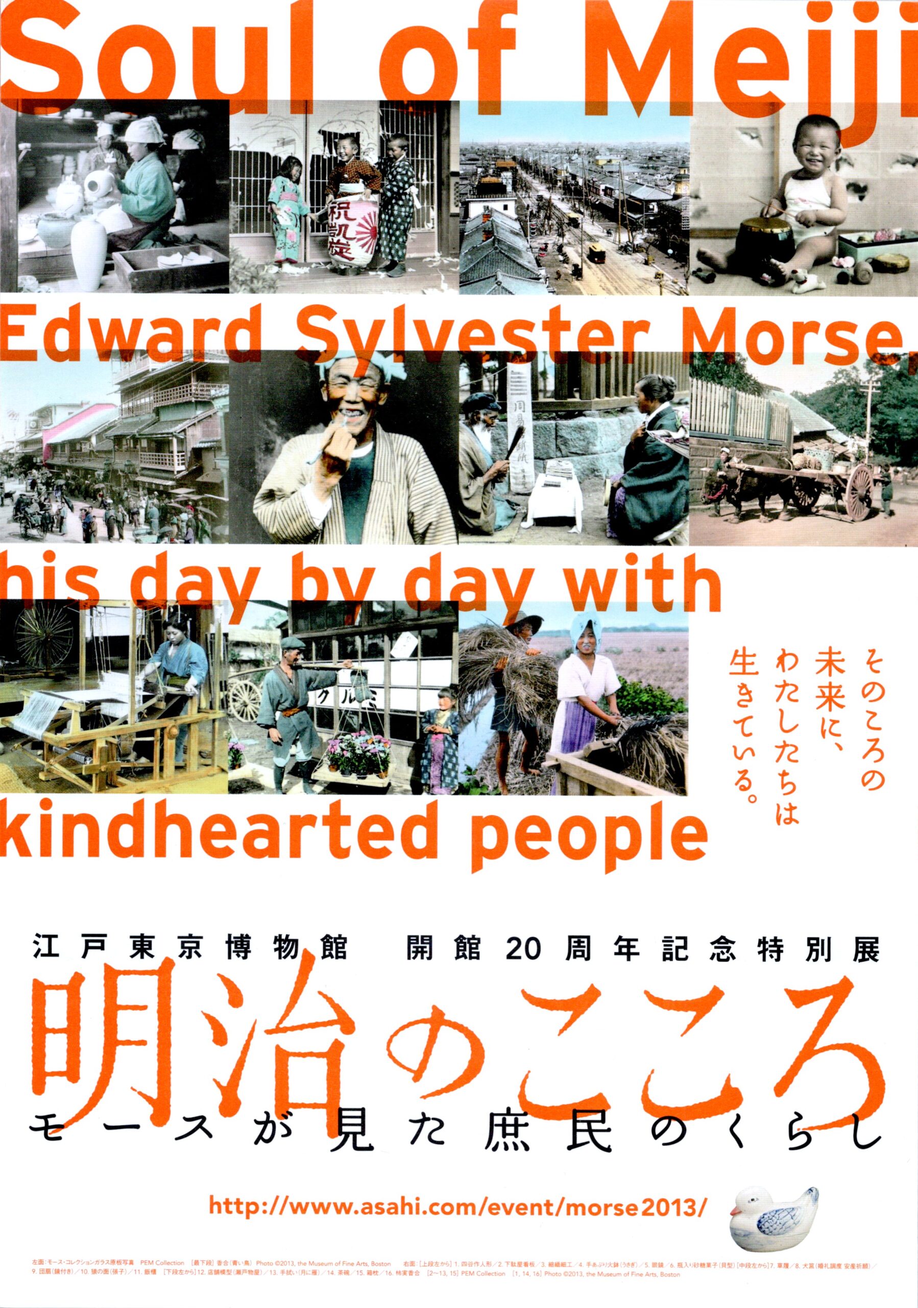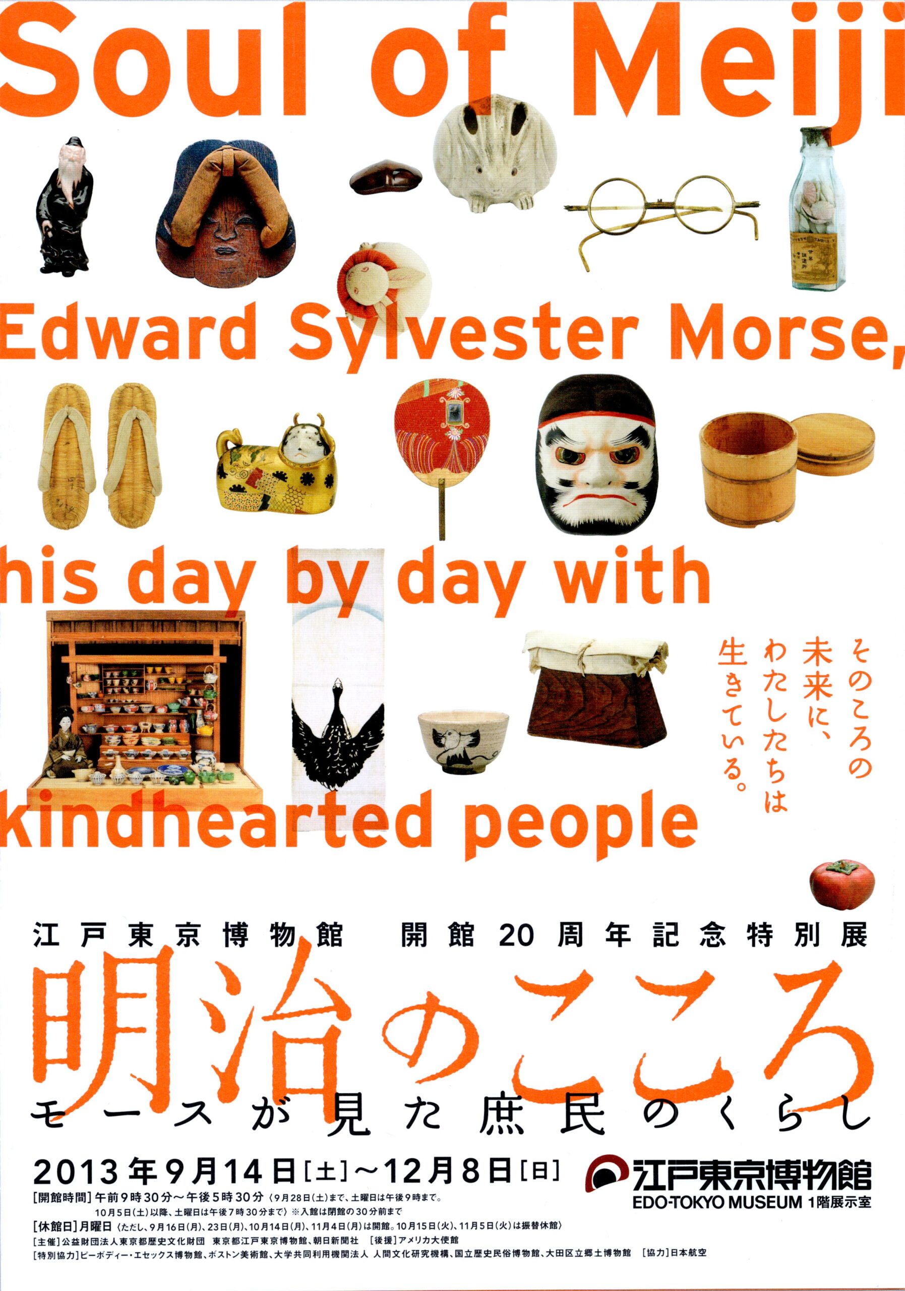 江戸東京博物館の開館20周年記念特別展です。大森貝塚の発見者として知られるエドワード・モースの日本コレクションのなかから選び抜かれた320点の生活道具や陶器、写真、モース自身のスケッチなどを紹介し、明治の日常にせまる展覧会です。