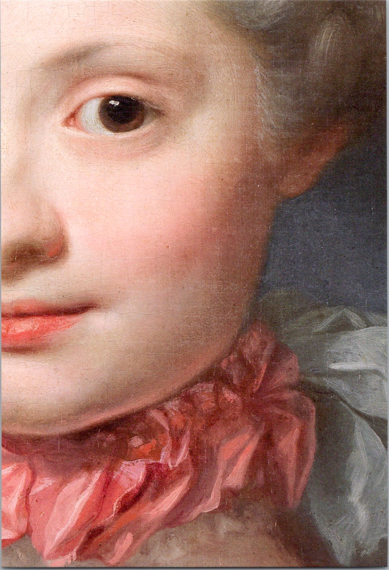 アップにするとまつげが白いのがわかりますが、彼女は(のちのゴヤの絵を見ると)ブルネットなので、これはおしろいでしょうか。それとも、長じるにつれて髪とまつ毛の色が濃くなっていったのでしょうか。