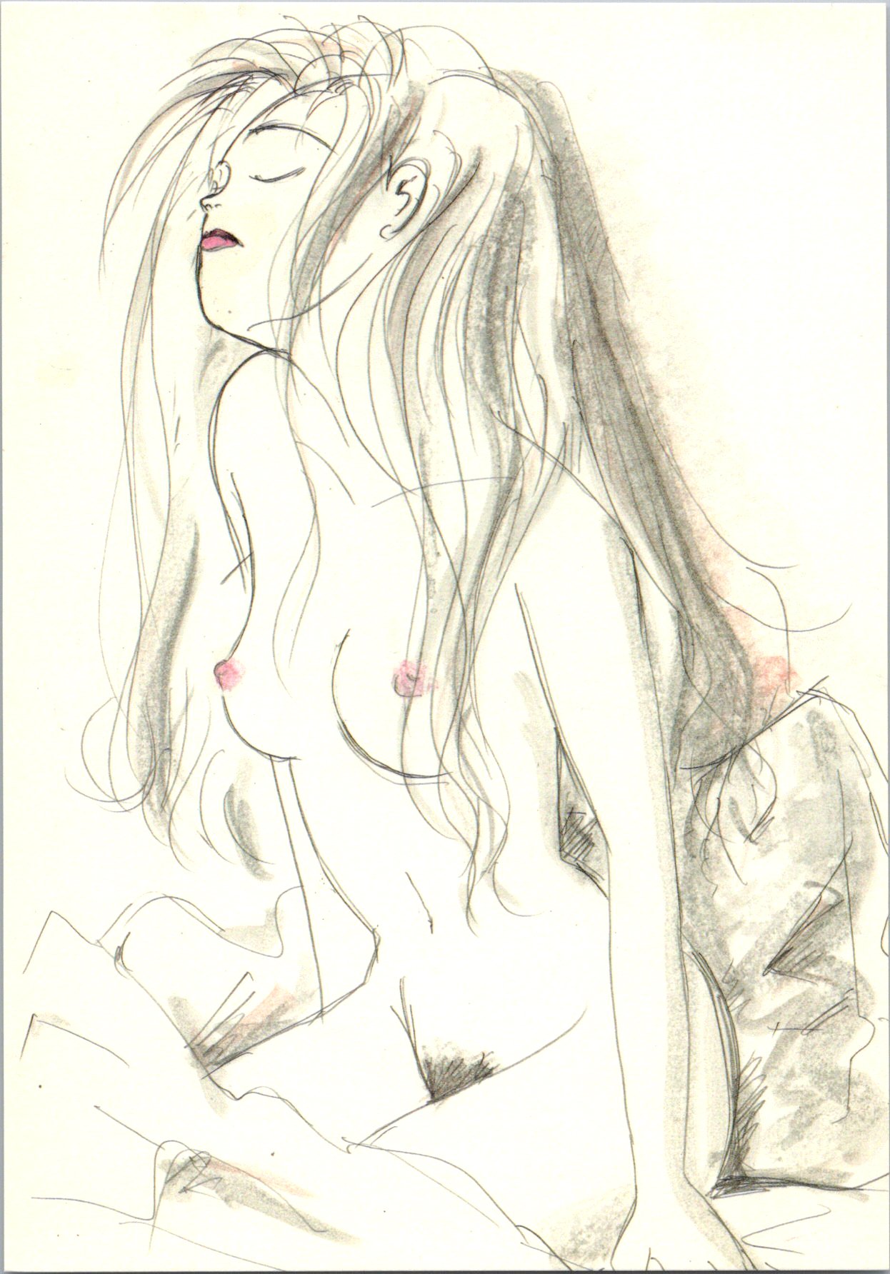 左は『Pink』旧装板の単行本の表紙にもなったイラストです。くちびると乳首のピンク色の使い方がシャープです。