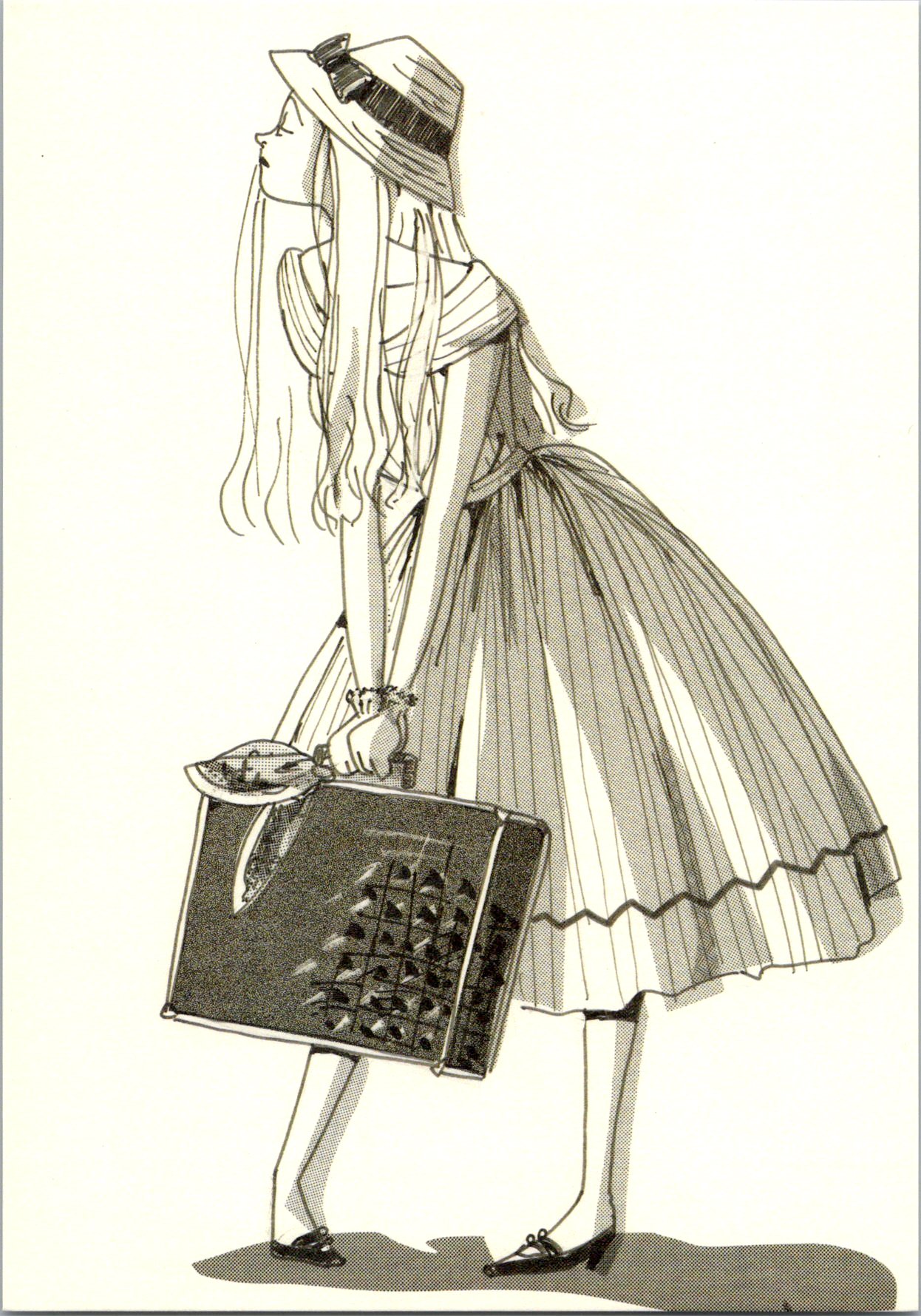 右はラストシーン、空港でワニの鞄を持ってハルヲを待っているユミちゃんのイラストで、新装版の表紙にもなっています。スクリーントーンの大胆な切り方がかっこいい。